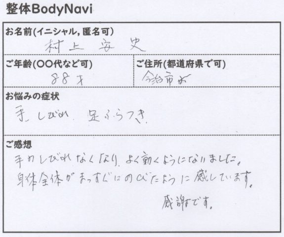 88歳でも、しっかりと身体が変化し